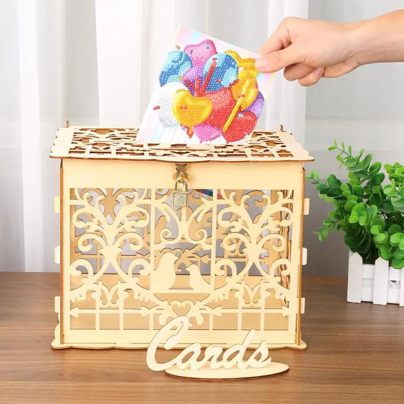 DIY Wedding Gift Flower Wooden Card Money Box Case With Lock Rustic Beautiful Party Favor Decoratio