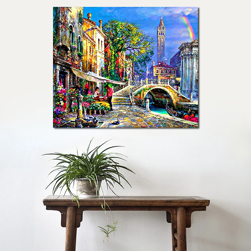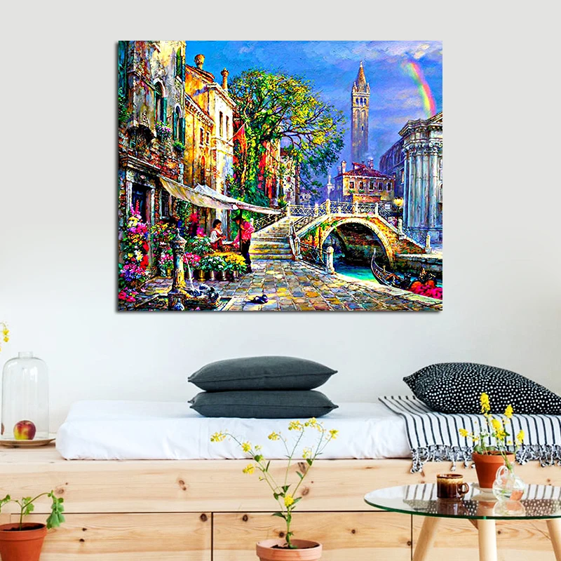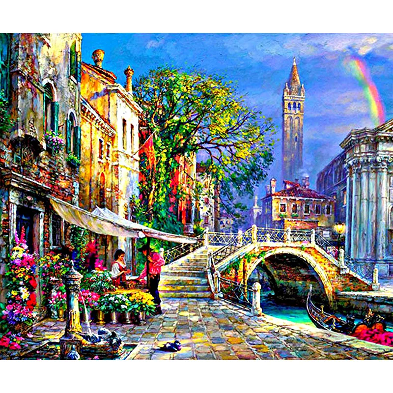 5D Diy Diamond Painting Cartoon landscape city street Cross Stitch beauty Square Diamond Mosaic Dia